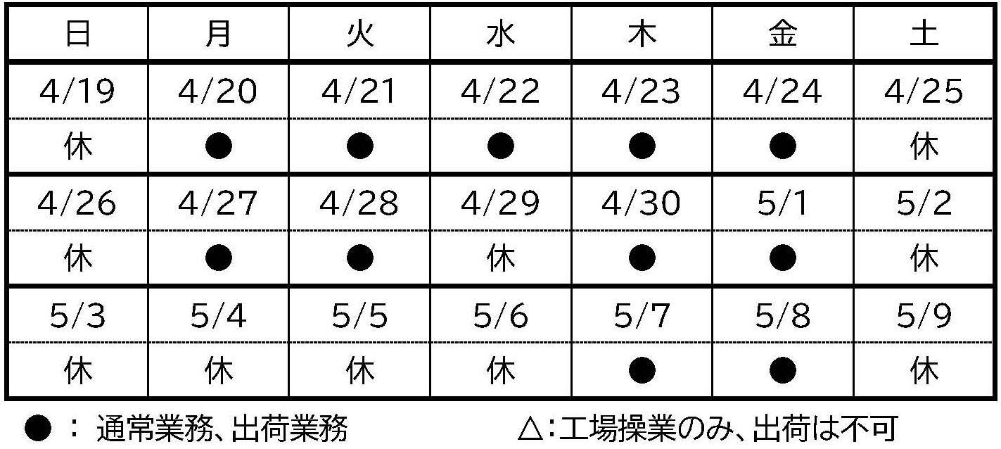 4.ゴールデンウィーク休業期間前後の出荷対応について