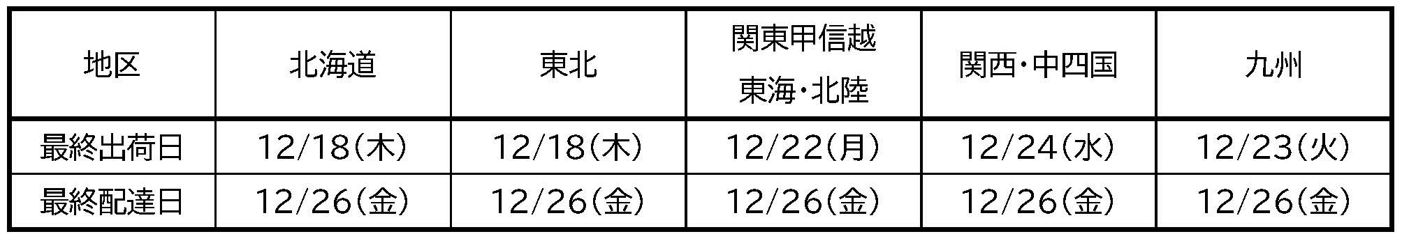 年末年始の配達は運送会社により対応が異なります。配達日、地域によってはさらなる特別運賃が必要になる場合があります。